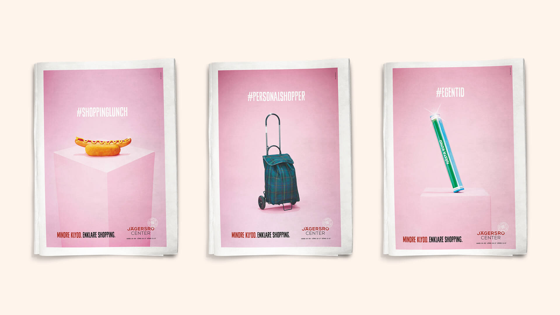 Kampanjen lyfter fram allt det som inte finns på Jägersro Center genom att visa upp det närmaste du kommer populära hashtags och trendiga shoppingfenomen som besökare.