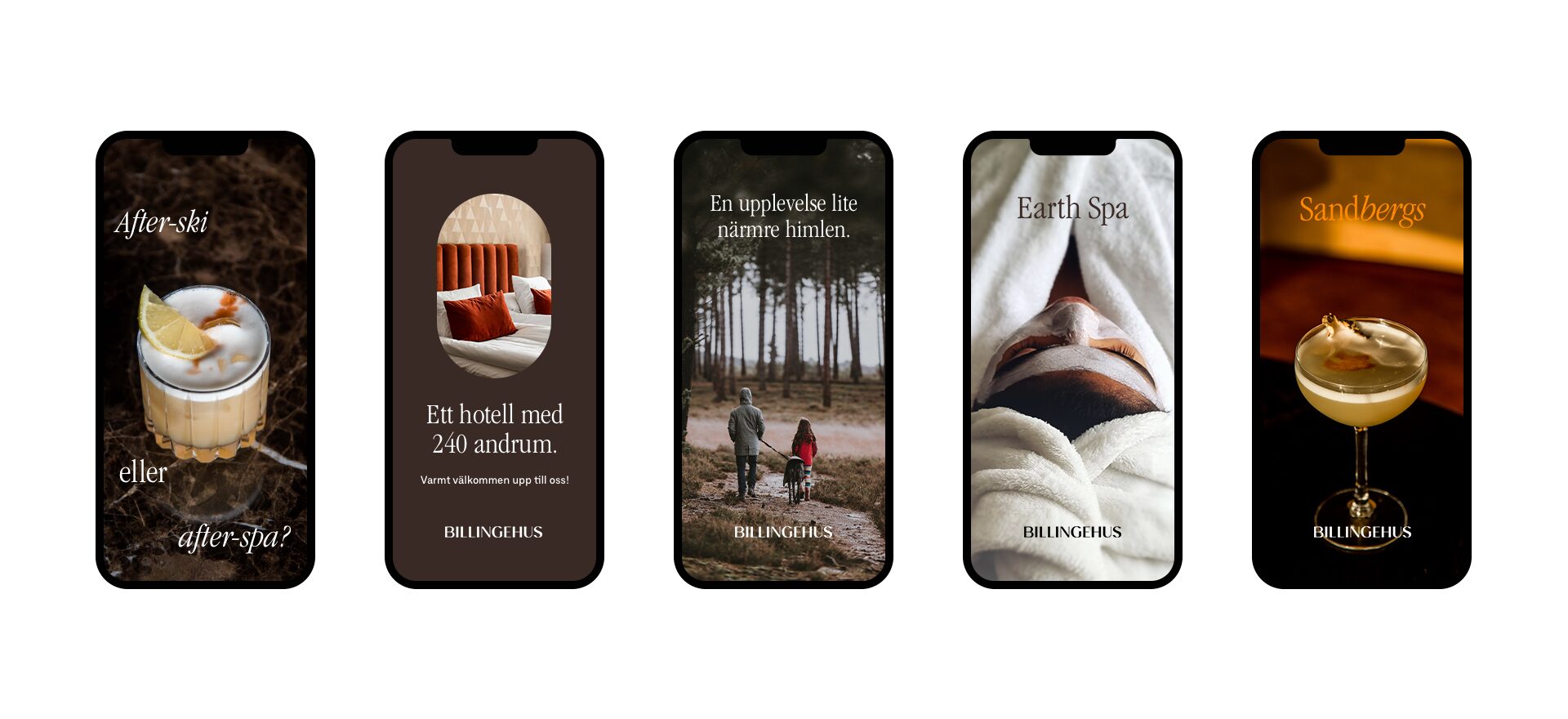 Varumärket Billingehus är en lokal institution och välbekant för skidåkare och friluftsälskare från hela landet. Inför nyöppningen tog vi fram en varumärkesplattform som bygger på platsens historia, unika arkitektur, fysiska läge och den framtida visionen om en modern fristad för rekreation, möten och nöjen. En plats som inspirerar till aktivitet och avkoppling året om.