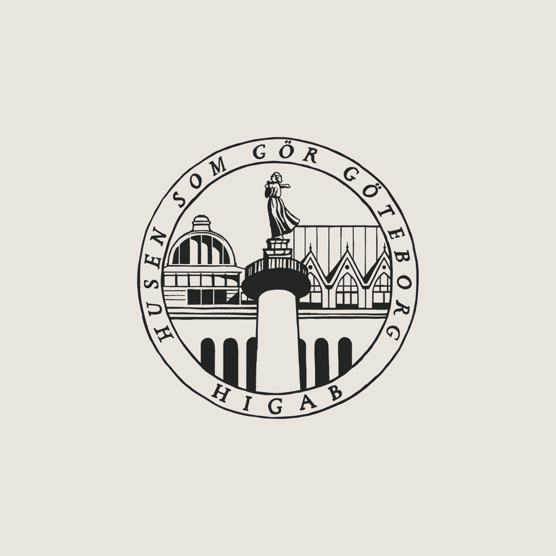 För att rama in devisen ”Husen som gör Göteborg” skapade vi ett sigill som förmedlar det anrika och hantverksmässiga i varumärket Higab. Sigillet används som komplement till den moderna och avskalade logotypen, som axlar rollen som tydlig avsändare i all kommunikation. Därför får sigillet en friare roll, och kan användas som en inledande vinjett i rörligt material, ett grafiskt element i samband med visualiseringar eller på brevpapper, bilar, profilkläder mm.