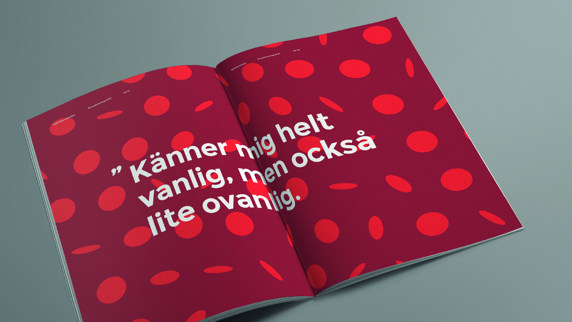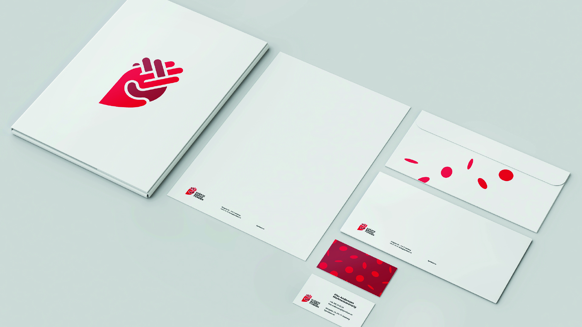 En stor del av Hjärtebarnsfondens arbete består i att stötta familjer med hjärtebarn. Men man har också via aktiv påverkan och stöd till forskning hjälpt sjukvården framåt, så att barn med hjärtfel lever längre än förr. Med andra ord har patientgruppen förändrats och blivit äldre. Därför skapade vi en identitet som bättre speglar den nya verkligheten, och som känns inkluderande och representativ för alla medlemmar. Istället för ett symboliskt barnhjärta består logotypen av en vuxen hand som fattar en barnhand på ett sätt som bildar ett stiliserat anatomiskt hjärta. Färgerna är inspirerade av det ljusröda, syrerika blod som lämnar hjärtat och det mörkröda, syrefattiga blod som är på väg tillbaka. Flödet löper vidare genom stiliserade blodkroppar som ger liv och rörelse åt identiteten. Precis som verksamheten den representerar, och som i verkliga livet.
