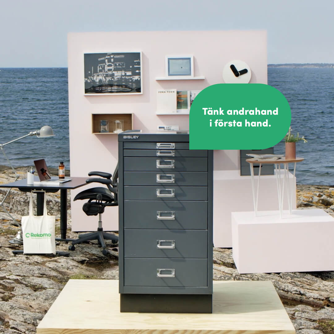 Rekomo har sålt och köpt begagnade kontorsmöbler under namnet Bafab sedan 1992. Långt innan koldioxidutsläpp och klimatstrejker tog plats på agendan. För att förtydliga erbjudandet om ett mer hållbart sätt att inreda tog vi fram en varumärkesstrategi, ett nytt namn och en ny identitet som satte Rekomos cirkulära affärsidé i centrum.